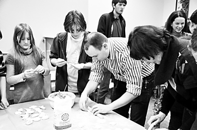 中国人“过年吃饺子”的文化,愈益引起欧洲友人的兴趣。图为除夕晚上,奥地利维也纳大学孔子学院的学生在一起包饺子。本报记者 方祥生摄