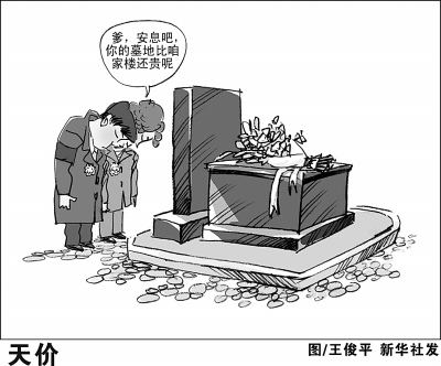 “骨灰盒比电视机贵”、“坟墓比房子贵”、“活得起,死不起”……近年来,殡葬暴利引起社会各界的广泛关注。从2003年开始,殡葬业连续数次入围“中国十大暴利行业”。除了乱收费,殡葬业更深层次的问题在于公墓市场的混乱。新华社发