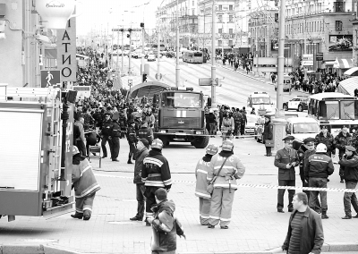 白俄罗斯首都明斯克“十月”地铁站11日发生爆炸,目前伤亡人数不详。据白俄罗斯通讯社报道,爆炸发生在当地时间18时左右。有目击者说,10多辆消防车和救护车已赶到发生爆炸的地铁站,白俄罗斯紧急情况部在现场组织撤离伤员,地铁入口已封闭。11人在爆炸中死亡,128人受伤。白俄罗斯紧急情况部表示,爆炸原因正在调查中。这是在明斯克“十月”地铁站附近拍摄的被封锁的现场。新华社发