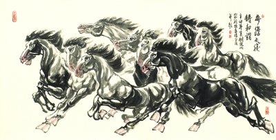 | 奔腾九骏铸和谐(中国画)刘院明 |