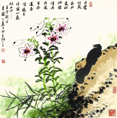 这些作品以朴素真挚的艺术语言,描绘了人民群众火热的社会生活和昂扬奋进的精神面貌,丹青笔墨寓深情,山水花鸟颂盛世,唱响了共产党好、社会主义好、改革开放好的时代主旋律。