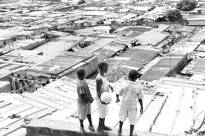 11月10日,在科特迪瓦阿比让阿提埃克比贫民区,几名孩子眺望自己的家园。阿提埃克比贫民区是阿比让面积最大的贫民区之一,约两万名贫困者居住在这里。新华社发