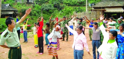 当晨雾散开,我们来到普洱茶的产地布朗山,布朗山边防派出所警官曹简正组织布朗族青年采摘谷花茶。2005年起西双版纳边防支队推行警官任村官制度,帮助各族群众结合自然条件和传统习俗,“一村一品”发展经济。景洪大队政委李雄武说,警官任村官对边疆的基层组织建设和思想建设发挥着特殊的作用。