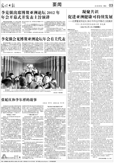 李克强出席博鳌亚洲论坛2012年年会开幕式并发表主旨演讲