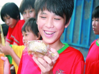 当琼中县县长王琼龙和副县长韦求香带着月饼、水果来到学校时,琼中女足的孩子们兴奋得欢呼雀跃,有的急不可待想打开盒子尝一块。“孩子们哪见过这么好的月饼!前几年都是我自己掏钱去市场上买那种纸包的筒装月饼,每人发一个。就这一个月饼都能让孩子们高兴好几天,有的舍不得吃,中秋那天吃了一半之后又存着,过几天再慢慢吃。今年能让小家伙们饱餐一顿了。”肖山说。