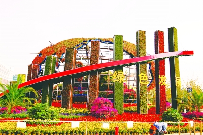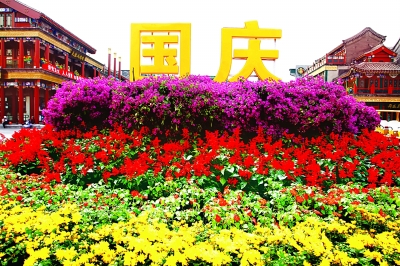 国庆节期间,北京街头摆出各式花坛,彩灯高照,流光溢彩,洋溢着浓浓的节日氛围。本报记者 郭俊峰摄