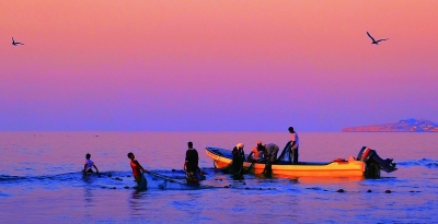 | 渔舟唱晚 海湾里,靠打渔为生的一家人在夕阳下正要收工。当时,晚霞满天,鱼鸥翱翔,全家其乐融融。 (日常生活类二等奖 外交部新闻司刘航摄) |