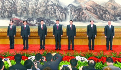 人民大会堂东大厅鲜花盛开,暖意融融,气氛庄重而热烈。500多名中外记者早早来到这里等候,准备争抢在第一时间报道新一届中共最高领导层的首次集体公开亮相。