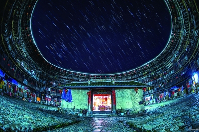 福建土楼产生于宋代,明清时期逐渐成熟,是由因战乱、饥荒等原因被迫南迁的客家人建造的。他们每到一处,都会把本姓本家人聚居在一起,建造独具特色的抵御性城堡——土楼。日本建筑家茂本计一郎认为,土楼“似黑色的UFO自天而降”。星空下的土楼,更让人想起辛弃疾的《青玉案·元夕》:“更吹落,星如雨。”(选自网络 郭超配文)