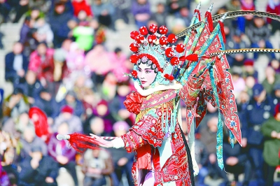 1月30日农历大年初三,在安徽省亳州市魏武广场天幕剧场,谯城区梆剧团的演员在演出传统梆剧《秦香莲后传》。春节期间,安徽省亳州市开展“文化惠民天天演、欢乐和谐过新年”精品戏曲展演活动,让市民和戏迷们在新春长假里大饱耳福、眼福,过上一把戏瘾。刘勤利摄/光明图片