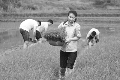 进入5月,正是川东农村抢收抢种的大忙时节。华蓥市机关企事业单位的党员干部组织“党员志愿者”助耕队分赴他们联系帮扶的贫困村,为劳弱户、缺劳户抢收油菜、抢栽秧苗。图为5月2日,助耕队为劳弱户彭代均移栽秧苗。邱海鹰摄/光明图片