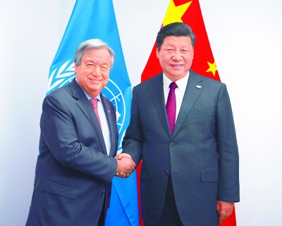 当地时间11月30日,国家主席习近平在布宜诺斯艾利斯会见联合国秘书长古特雷斯。新华社记者 李学仁摄