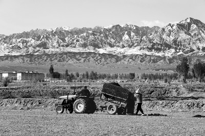 近日,甘肃省张掖市甘州区各乡村农民抢抓农时,及时开展农田施肥、灭草、浇水等春管作业,为夏粮丰收打好坚实基础,田间地头一派忙碌景象。图为5月1日,在甘州区花寨乡柏杨树村,村民在田间作业。杨永伟摄/光明图片