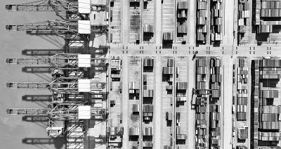 5月9日,在江苏连云港港集装箱码头,货轮进行集装箱装卸作业。耿玉和摄/光明图片
