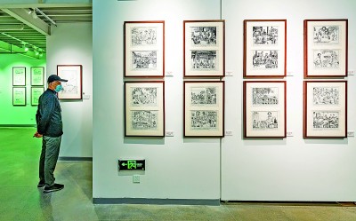 江苏苏州工业园区,观众在苏州基业艺术馆党的一大至七大主题连环画展上观展。张锋摄/光明图片