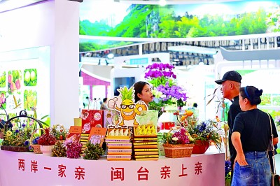 在福建展区,来自厦门同安闽台农业融合发展产业园的个头硕大的牛油果、来自仙游县台湾农民创业园的仙游甜柿等果蔬吸引了不少观众和采购商的目光。“这个牛油果是从台湾引进的品种,单个重量有一斤多,种植时使用有机肥,虽然市场价格较高,但这两天已经有几家企业来跟我们签订了协议,一次订购一吨以上。”参展商林忠太告诉记者。