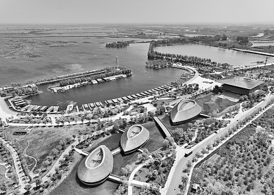 初夏时节,河北雄安新区白洋淀内天蓝水清、芦苇鲜绿,游船往来穿梭,构成一幅“城淀相依、共生共融”的美丽画卷。图为5月8日拍摄的雄安新区白洋淀旅游码头景色。新华社记者 牟宇摄