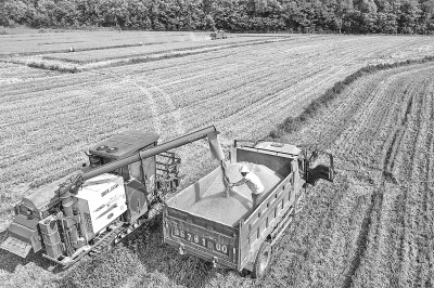 6月1日,在河南省信阳市光山县南向店乡何畈村鑫磊合作社,社员将收获的小麦装车。截至5月31日17时,河南省已收获小麦4814.1万亩,约占河南全省种植面积的56.5%。目前,河南省夏播工作也已陆续展开。新华社发