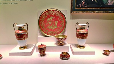 2024年是中法建交60周年暨中法文化旅游年。这次展览同样也包含了不少中国元素,这也是当时中法两国文化交流真实的映照。展览中不仅有拿破仑下令编撰的世界上第一部中法拉丁文三语字典,反映了当时法国对于中国语言文化交流的重视,还有一套从中国定制的红釉描金系列瓷器,彰显了其对中国文化的热爱。