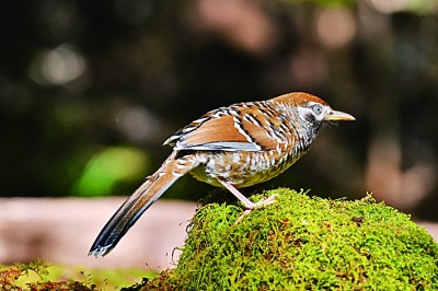 “看!白点鹛!”原来,“鸟鸣”声是丽江市玉龙县野生动植物保护协会老君山鸟类监测保护员乔丽华发出的。他兴奋地压低声音,轻轻抬手示意方向,放缓脚步,悄悄地来到六七米外的观鸟点。透过编织网的洞口,只见一只白点鹛正在观鸟台上欢愉地吃着食物。
