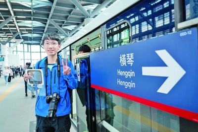 在横琴口岸,车辆最快只需2分钟、行人最快只需20秒就可完成通关;12月2日通车的澳门轻轨横琴线,打通了澳门和内地的轨道交通,旅客可乘坐轻轨往返横琴和澳门;12月9日,港珠澳大桥迎来通车六周年,通过大桥口岸的进出口货物总值累计超9600亿元……