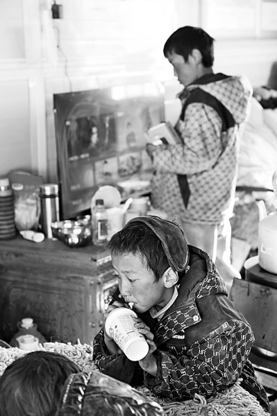 1月16日,在定日县长所乡古荣村临时安置点,两个小朋友在房间里休息。本报记者 刘宇航摄/光明图片