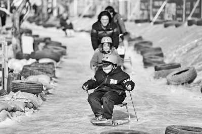 1月18日,2025桃醉平谷·镇罗营冰雪嘉年华在北京市平谷区镇罗营镇湖畔耕读园开幕,吸引游客前来体验。本次冰雪嘉年华将持续至2月上旬,游客在游玩冰车、冰壶等冰上运动的同时,还可以欣赏文艺表演、品尝特色美食。图为游客在活动现场滑冰车。新华社记者 任超摄