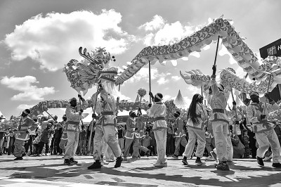 2025内罗毕中国春节庙会在肯尼亚首都内罗毕拉开帷幕,其中包括舞龙、舞狮、民间舞蹈、少林功夫表演以及中国美食展等活动。图为1月19日,演员在肯尼亚首都内罗毕举行的中国春节庙会活动上表演舞龙。新华社发