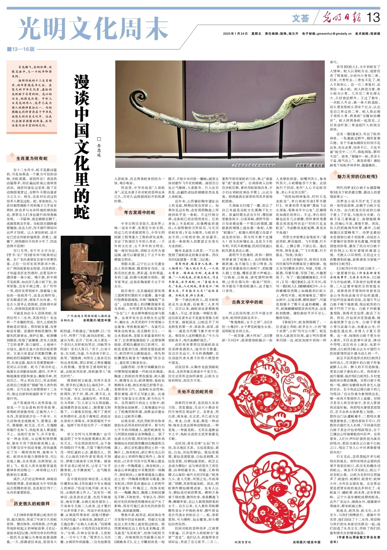 中华文明历史悠久,是世界上唯一没有中断、发展至今的文明。经过几代学者接续努力,中华文明探源工程等重大工程的研究成果,实证了我国百万年的人类史、一万年的文化史、五千多年的文明史。窥一斑而知全豹,将蛇文化作为望远镜,就可以瞭望到上下五千年的辉煌文明史。