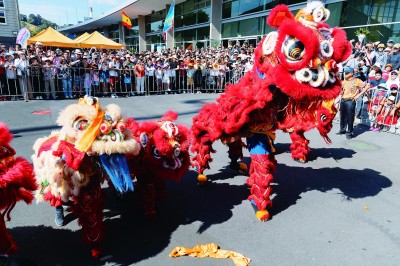 在新西兰最大城市奥克兰,2025蛇年“新春花市同乐日”活动以舞狮拉开帷幕。新西兰总理拉克森和中国驻新西兰大使王小龙分别为狮子头系上丝带,唤醒雄狮,祝福来年吉祥与丰登。拉克森说,新西兰的华人群体推动了新西兰的经济、社会和文化发展,感谢华人为当地所作贡献。