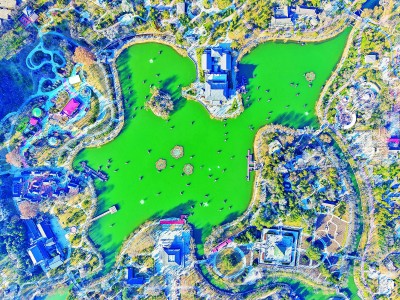 2月4日,陕西省西安市碑林区兴庆宫公园,天蓝水碧,一片春意盎然,吸引众多市民游客前来游玩赏春。张成摄/光明图片