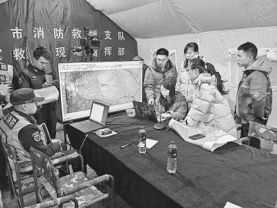 2月8日拍摄的山体滑坡抢险救援指挥部。新华社发