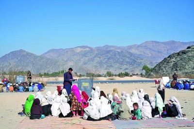 阿富汗连续40多年的战乱环境,让很多学龄儿童失去了基本的学习条件。2月12日,在阿富汗东部边境省份楠格哈尔贾拉拉巴德的一条公路边,数百名孩子席地而坐,在没有校舍和桌椅的露天学校上课。 新华社发