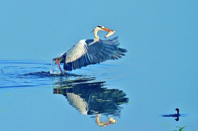 天气晴朗时,漫步青龙湖边,碧波荡漾的湖水与湛蓝的天空交相辉映;雾气氤氲时,眼前的风光又是另一种意境,亦虚亦实,犹如一幅素雅的国画。而在苍龙湖南端,周围林木葱茏、层林尽染,湖上的残荷不仅为白天鹅提供了天然口粮,也增添了一份独属于初春的诗情画意。