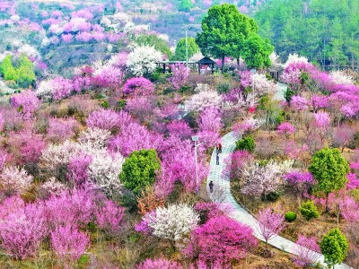 2月23日,湖北省黄冈市罗田县骆驼坳镇燕窝湾村梅花竞相开放,山乡春意渐浓。王江摄/光明图片