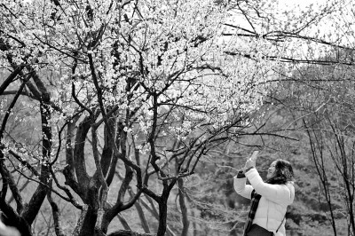 早春时节,多地呈现生机勃勃的春日景象。图为2月26日,游人在江苏南京古林公园拍摄梅花。新华社发