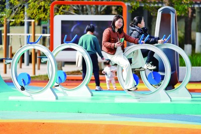 春日渐暖,许多市民来到湖南省长沙市银杏公园开展运动休闲活动。该公园将智能设备融入自然景观,划分了活力运动区与游乐区,成为市民日常锻炼、休闲放松的好去处。图为2月27日,市民在长沙市银杏公园使用智能设备锻炼身体。新华社记者 陈泽国摄