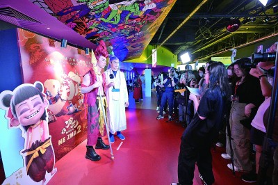 中国动画电影《哪吒之魔童闹海》将于3月6日在新加坡正式上映。图为2日,人们参加电影《哪吒之魔童闹海》新加坡首映礼。 新华社发