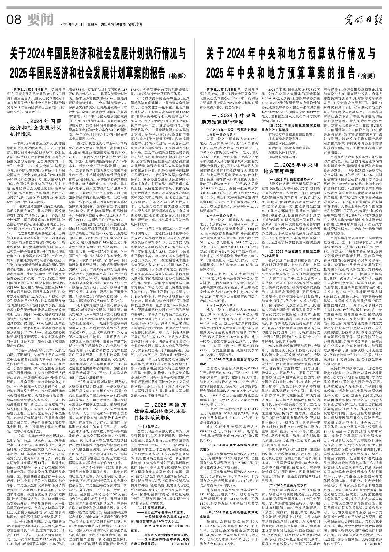 关于2024年中央和地方预算执行情况与2025年中央和地方预算草案的报告