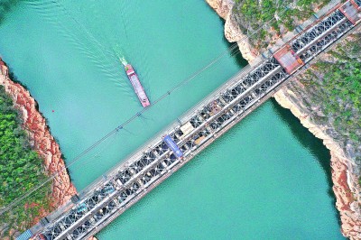 3月5日,贵州瓮马铁路南北延伸线项目控制性工程乌江特大桥顺利合龙。乌江特大桥全桥长约520米,主跨337米,桥面至江面高度约200米。新华社发