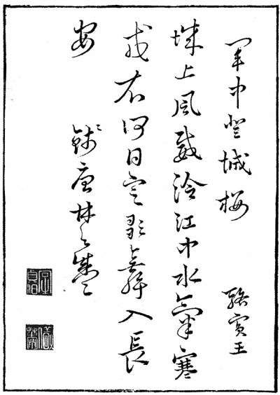 以诗励志的,有骆宾王的“投笔怀班业,临戎想霍勋”(《宿温城望军营》),以班超、霍去病为师,表达希望建一番伟业的决心。高适的 “总戎扫大漠,一战擒单于”(《塞上》),目标则更为具体,此外,他也表达了“画图麒麟阁,入朝明光宫”(《塞下曲》)的愿望。岑参既高歌“小来思报国,不是爱封侯”(《送人赴安西》)的忠义,也并不忌讳“功名祗向马上取”(《送李副使赴碛西官军》)的追求。在他们这里,报国和追求个人功业并不矛盾。在他们的诗歌里,充溢着保家卫国的热情,也昂扬着建功立业的愿望。