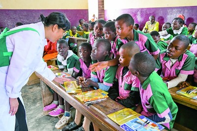 中国(山西)第24批援喀麦隆医疗队姆巴尔马约分队4月3日在姆巴尔马约市一所小学开展义诊活动,为当地学生和教职员工提供口腔检查、健康咨询及疾病预防宣教服务。新华社发