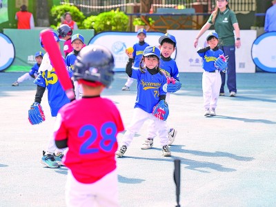 4月13日,一场幼儿软式棒垒球赛在成都高新区举行,来自高新区6所幼儿园的100余名儿童参与角逐,在运动中乐享周末快乐时光。新华社记者 王曦摄