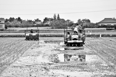 4月23日,无人驾驶插秧机在湖南省益阳市南县南洲镇班嘴村的农田里作业。这些插秧机可实现路径规划、实时定位等智能功能,只需人工补充秧苗,在节省人力的同时,使插秧作业更加规范、高效。新华社记者 陈振海摄