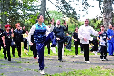 每年4月的最后一个星期六是“世界太极日”。图为4月26日,罗马尼亚布加勒斯特太极爱好者参加“世界太极日”活动。 新华社发
