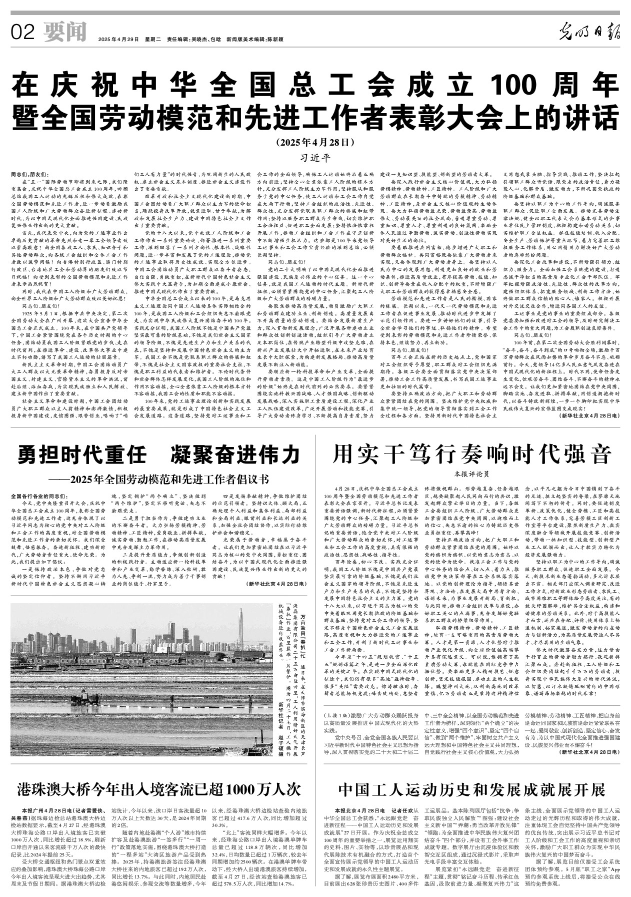 在庆祝中华全国总工会成立100周年暨全国劳动模范和先进工作者表彰大会上的讲话