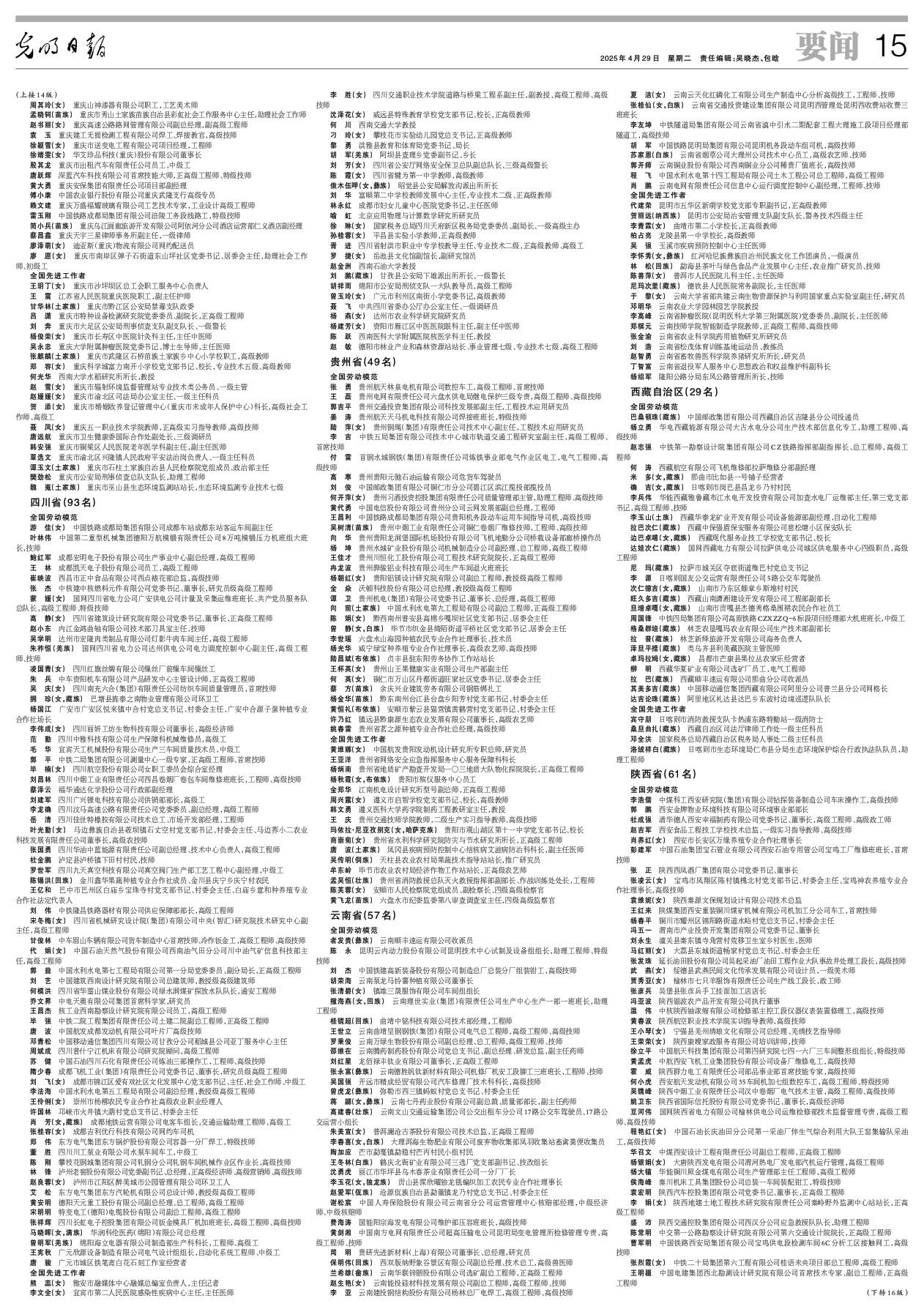 全国劳动模范和先进工作者名单