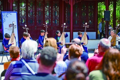 4月27日,马耳他“世界太极日”暨春季庙会活动在圣卢西亚市中国古典园林“静园”举行。图为来自圣伊纳爵学院汉达中学的学生在活动现场演奏琵琶。