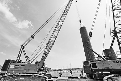 5月3日,中铁上海局工人在进行沭河特大桥施工。新华社发
