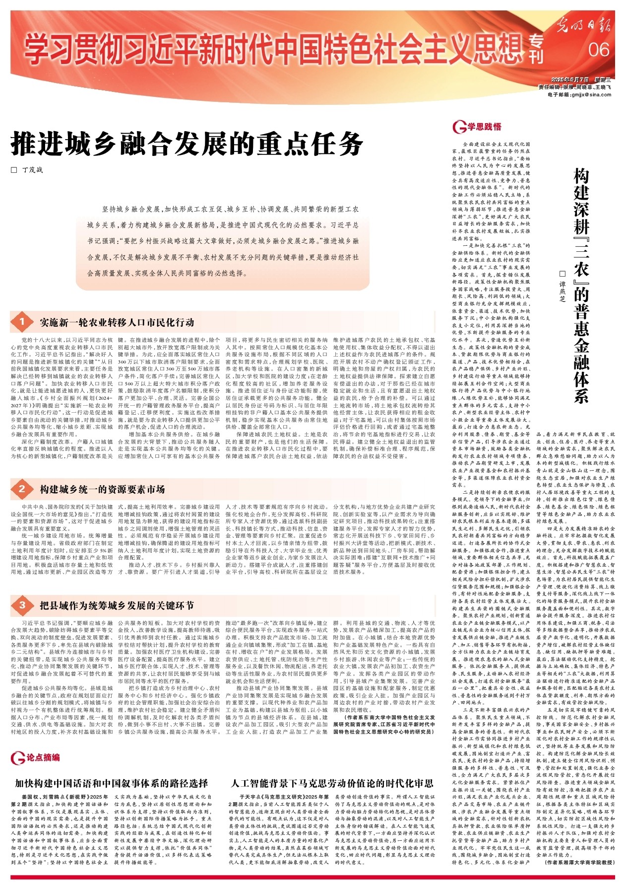 全面建设社会主义现代化国家,最艰巨最繁重的任务仍然在农村。习近平总书记指出,“要始终坚持以人民为中心的发展思想,推进普惠金融高质量发展,健全具有高度适应性、竞争力、普惠性的现代金融体系”。新时代的金融工作必须站稳人民立场,系统聚焦农民农村共同富裕的重点领域与薄弱环节,推进普惠金融深耕“三农”,更好满足广大农民日益增长的金融服务需求,加快补齐农业农村发展短板,扎实推进共同富裕。